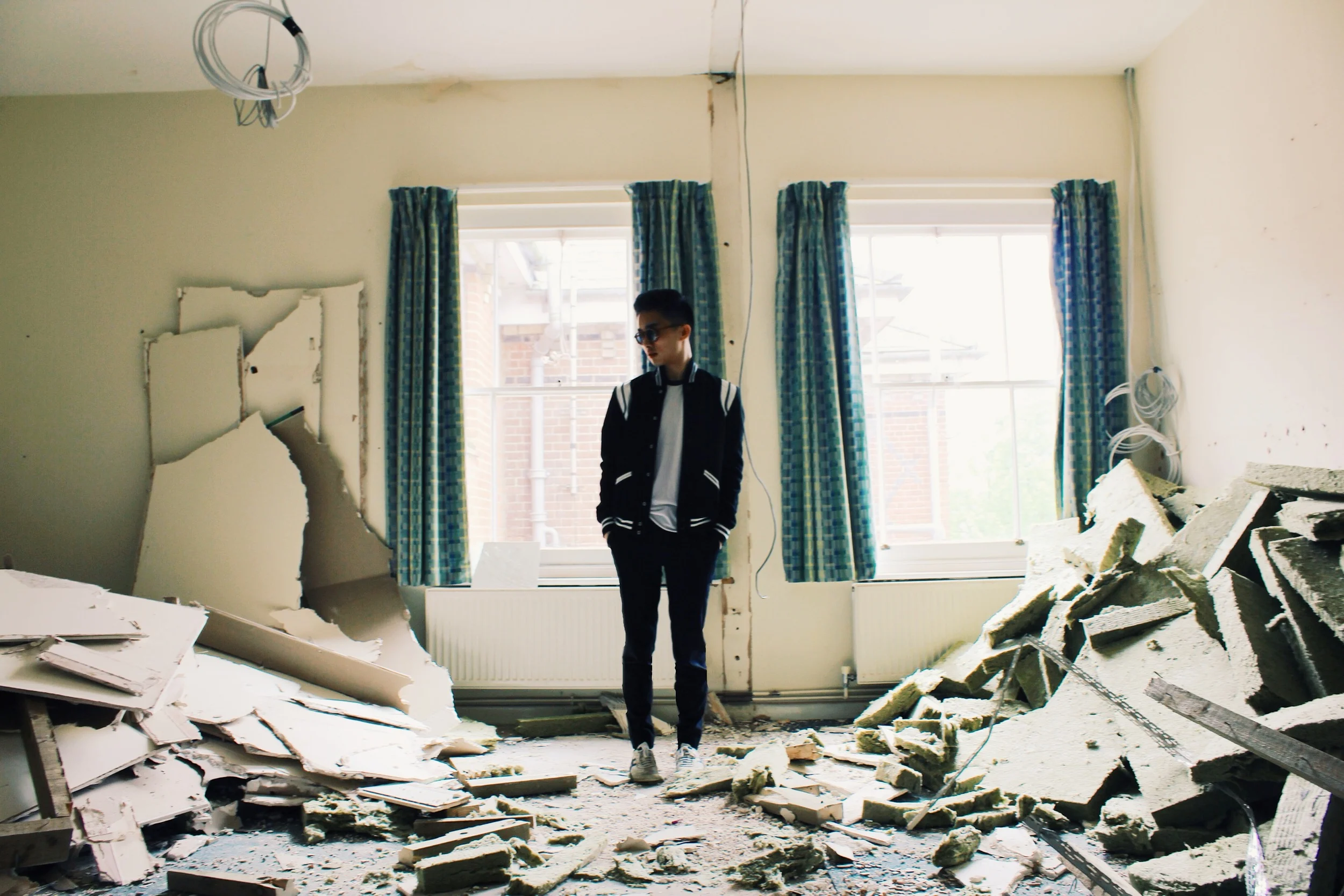 Anyways, enough of my story and more on the shoot. Isn't the set amazing? The location is the best yet and it was discovered by my friend, Suraj (who also shot all the above pictures! thank you!). Before you judge the conditions of my home, I don't live in this wreck. My school accommodation in the UK was under renovation at that time. Along with my sense of creativity and total madness, Suraj and I thought it'd be fun to take a few pictures and the result is this. There's also a story behind the jacket.